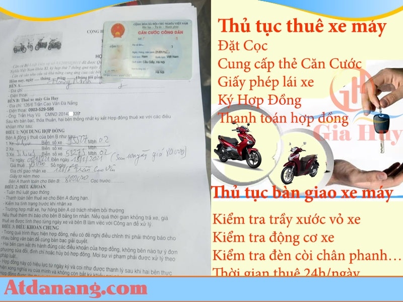Đối với hình thức thuê, đăng kí qua số hotline hoặc yêu cầu đem xe đến tận nơi. Được kiểm tra xe trước khi nhận. Hợp đồng rõ ràng, giá cả chi tiết cụ thể