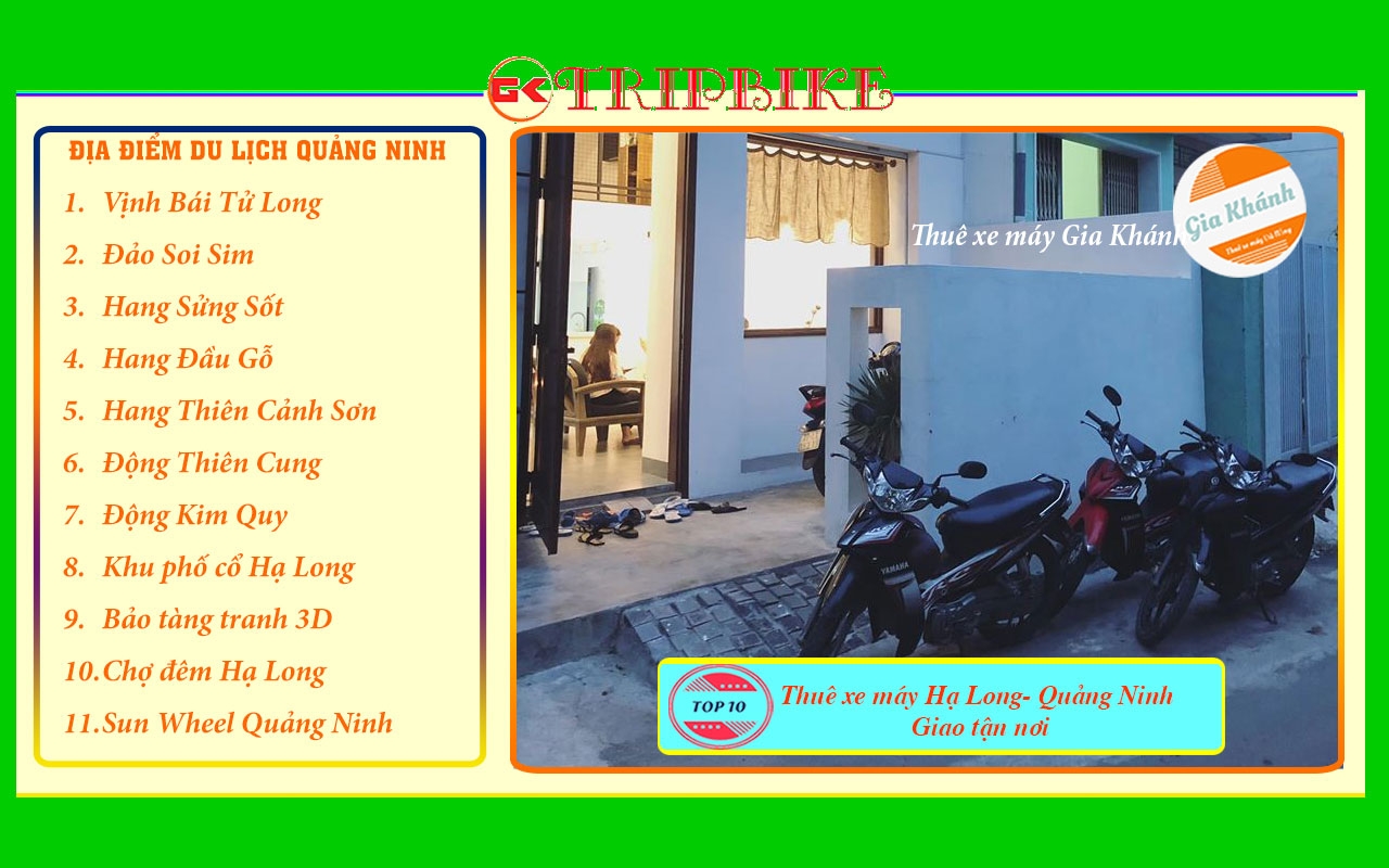Chính là một trong những phương tiện hữu dụng nhất dành cho khách du lịch. Với phương tiện di chuyển này, du khách có thể tham quan những địa danh thắng cảnh Hạ Long- Quảng Ninh. Những trải nghiệm bằng xe máy. Thật sự là một điều thật thú vị du khách sẽ cảm nhận được muôn màu cuộc sống và sinh hoạt của người dân nơi đây. Giá bao nhiêu? nên tham quan địa điểm nào? Thủ tục như thế nào ? Bài viết chia sẽ giải đáp cho các bạn