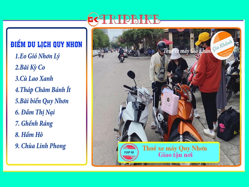 So với ô tô hay Taxi phương tiện di chuyển bằng xe gắn lái vừa rẻ vừa dễ sử dụng, lại tiết kiệm, tự do đi đến hay dừng đỗ bất cứ địa điểm du lịch nào mà mình thích. Chi phí rẻ, nên hầu như khách sử dụng phương tiện đi lại này khá nhiều khi du lịch Quy Nhơn. Cùng tìm hiểu các địa chỉ đang cho thuê xe máy sau