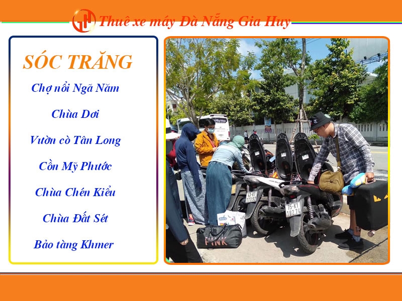 Để khám phá món ăn cũng như cảnh đẹp ở đây. Giới thiệu đến bạn dịch vụ thuê xe máy Sóc Trăng Hi vọng giúp bạn có phương tiện trong đi lại. Cùng Gia Huy Tìm hiểu những địa chỉ sau nhé